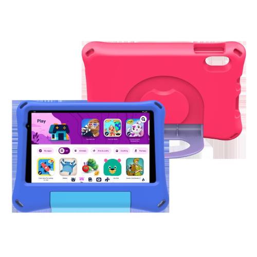 Include Google Kids Space per il controllo parentale e paraurti in gomma blu e rosa per una maggiore protezione.